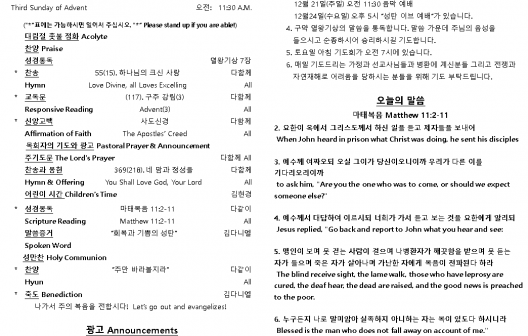 2025년 12월 14일 주일 예배 주보