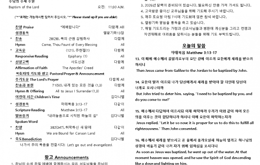 2026년 1월 11일 주일 예배 주보